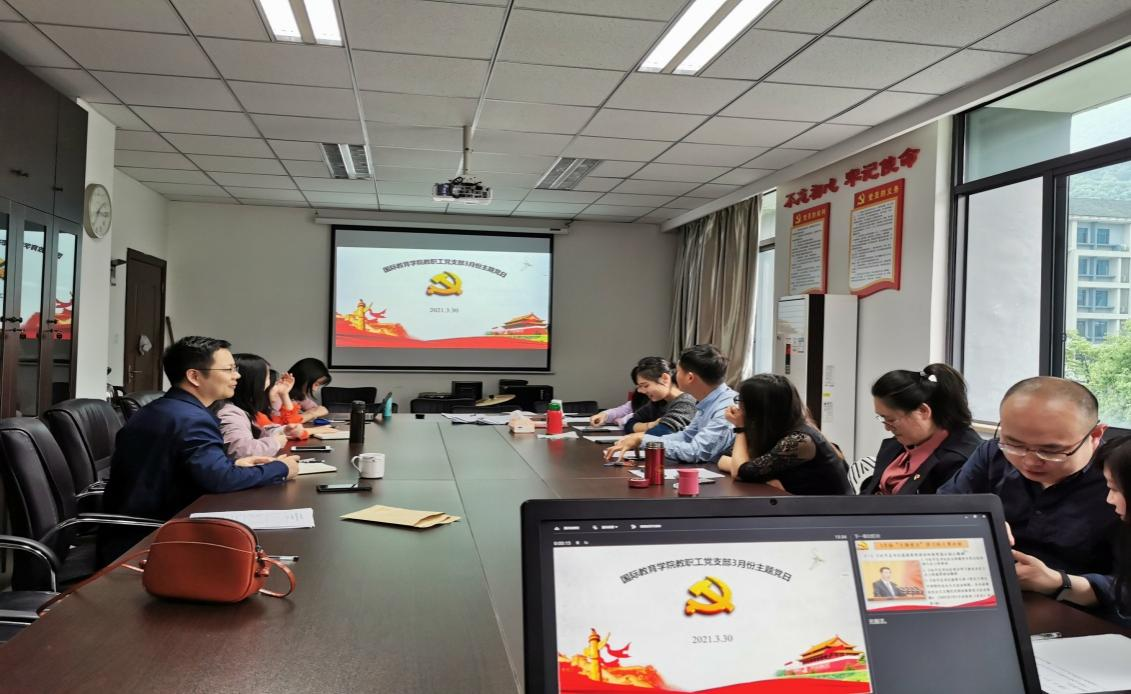 2021年3月30日下午1:00,在西区立德楼B403会议室组织开展了国际教育学院教职工党支部3月主题党日学习活动,活动由教工党支部书记刘耀同志主持。