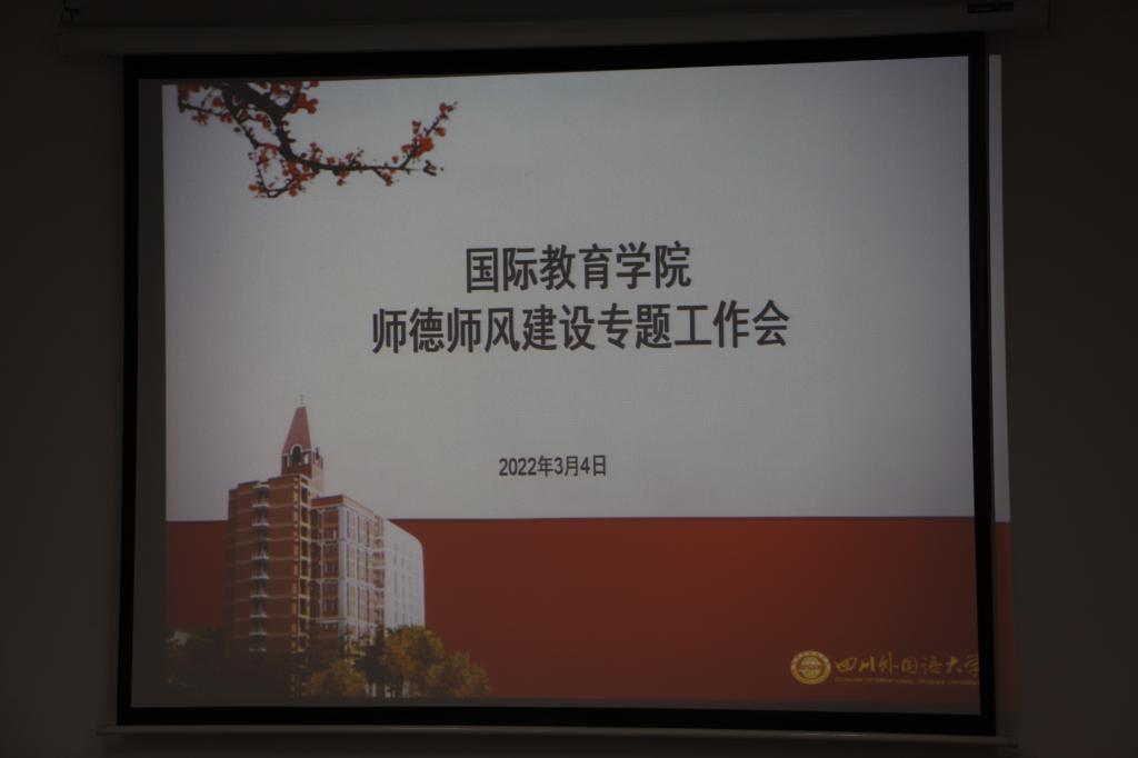 20223413:00,44118太阳成tyc城集团国际教育学院在西区立德楼B403会议室召开了2022年度师德师风建设专题工作会,深入学习贯彻习近平总书记关于教育的重要论述和教师队伍建设的重要指示精神。会议由国际教育学院党总支书记丁欢主持,学院院长、党总支副书记龙洋,党总支副书记黄茜及全体教职工参加会议。