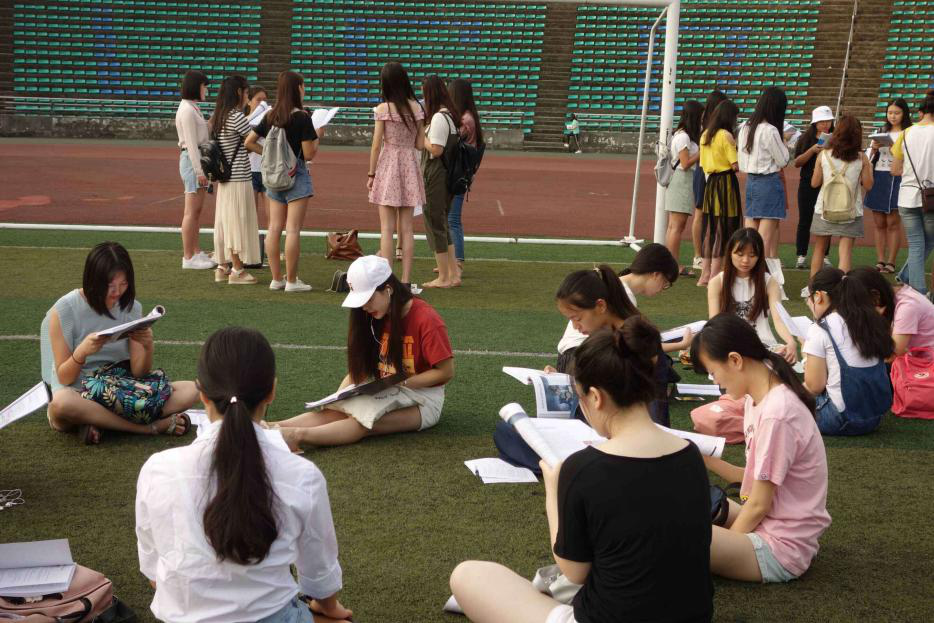 (教育学院学子进行晨读)