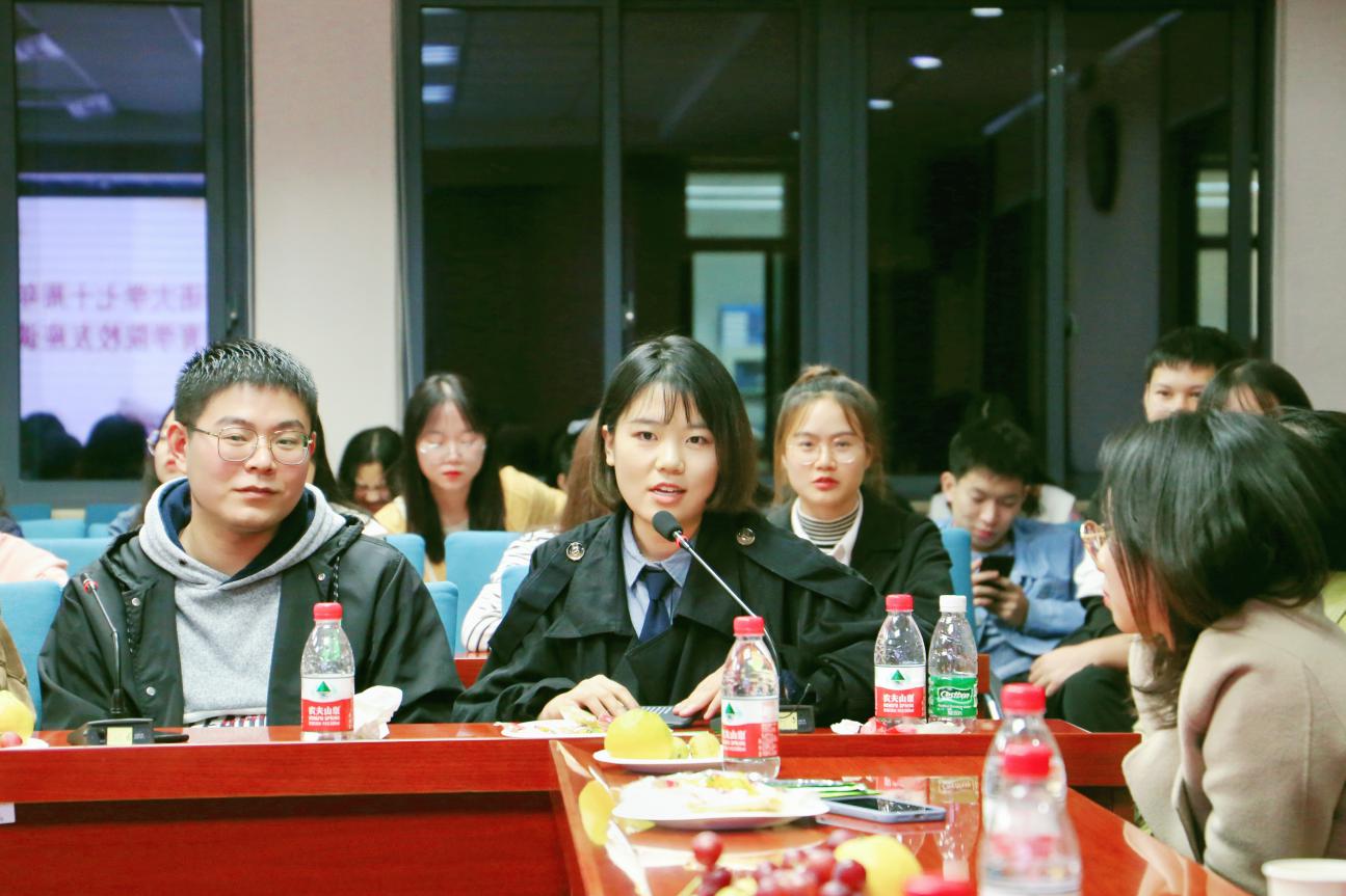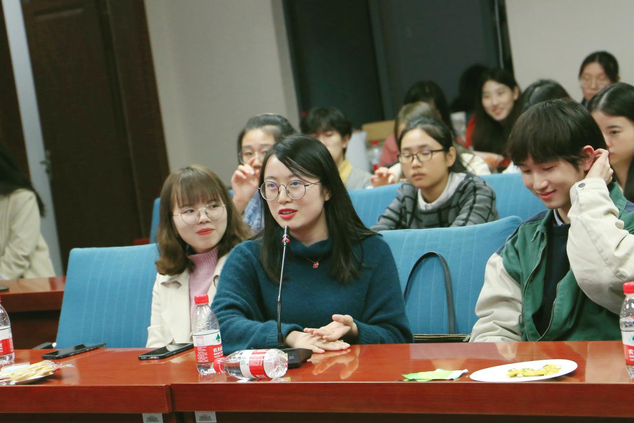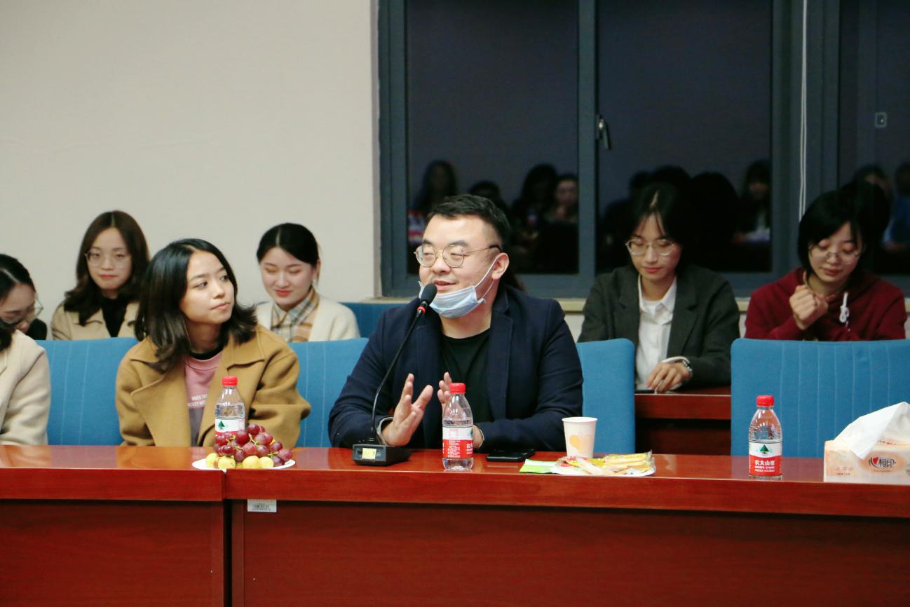 接下来,就到了大家一起交流的环节,参加座谈会的校友们都踊跃发言,他们表达对学院的感谢之情,感谢老师们谆谆教诲的同时,也结合自己工作实际及社会经验发表了很多带有启迪性的观点。第一,校友们都强调了大学时光匆匆流逝,而作为学生要做的应是将这短暂的大学时光充分利用到极致。其中,陈晓莹教授结合自己的工作经历讲到不必焦虑于将来,应多立足于当下。她相信只要大家带着满腔的奋斗激情不懈地努力学习,终将会收获到累累硕果。第二,校友们分享了他们在工作的不断摸索中去寻找更适合自己的人生方向与就业方向的亲身经历,鼓励在校生们先就业后择业,从而在试误中成长,在试错中寻找到属于自己的定位。最后,他们讨论到了学院优秀老师们对他们潜移默化且深远的影响,在老师的影响下,更让他们坚定了内心所向—教师。