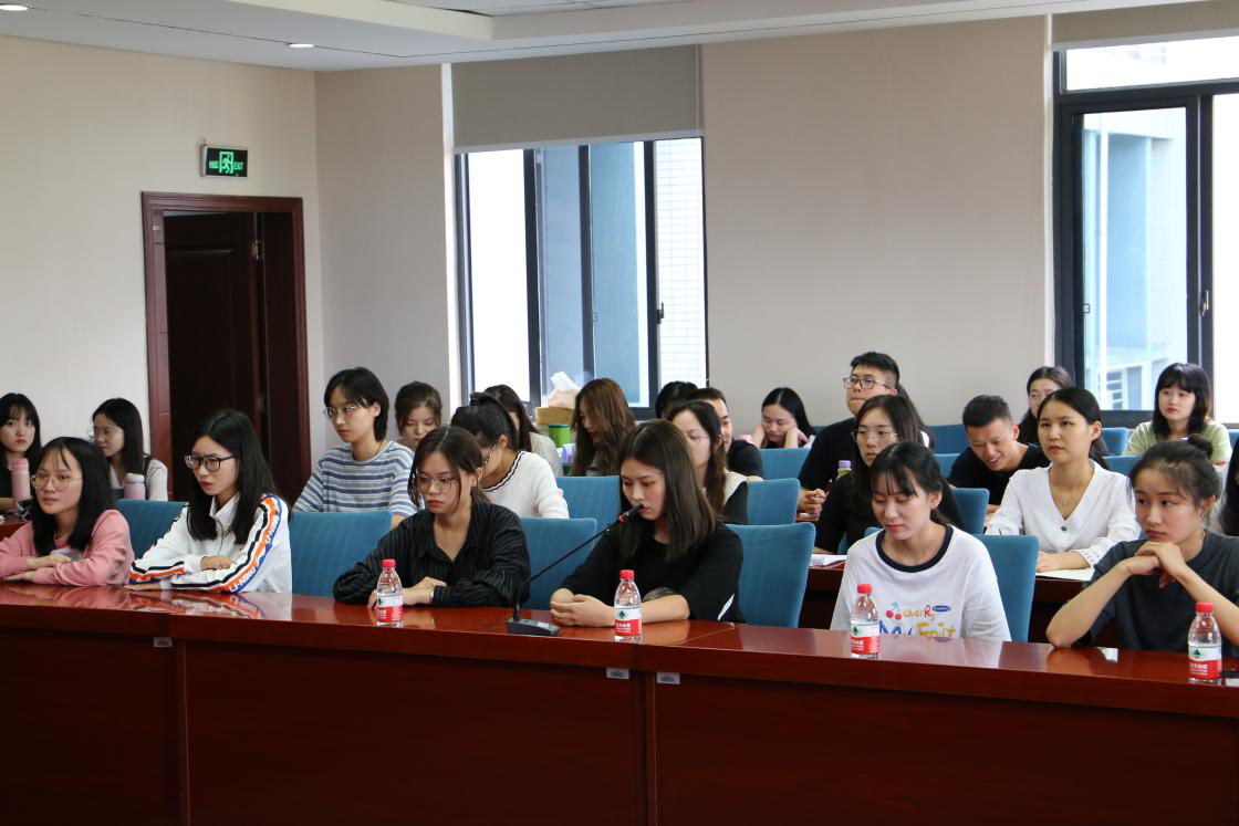 会议的第二个议程,教育学院龙洋副院长向全体学生介绍学院研究生培养情况。他要求学生们要打好语言功底,结合我校“外语+国际”的特色与优势,向“双语教师”、“TESOL教师”等多元化复合型人才发展。