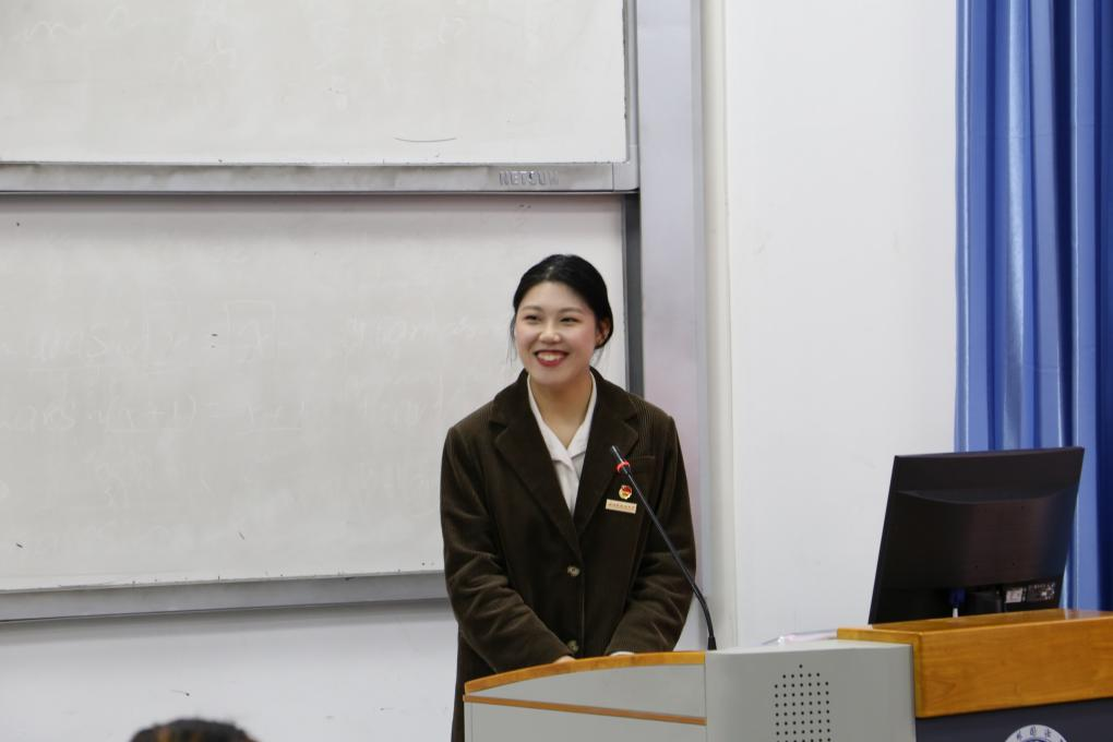 接下来,由党总支副书记黄茜进行大会发言。首先,她阐述了学代会对于学生成长的意义,其体现了学生自我监督、自我管理、自我服务的意识,是“自强、自理、自学”三自精神的延伸。同时,她提出了三点要求:第一,不忘初心,我心向党。学生代表应发挥示范作用,带动广大同学坚定理想信念,投身强国伟业。第二,上传下达,服务师生。学生代表应树立服务意识,牢记服务使命,开拓创新,奋发向上。第三,踏实肯干,从严治会。学生会要集思广益,搭建自主发展平台,锻炼多维度能力。最后,她表示,同学们应精准定位,合理规划学习与工作。如校训“海纳百川,学贯中外”所说,学生不仅要锻炼学习能力,同时也要立足国际视野,胸怀家国,担当作为,方能成为实现中华民族伟大复兴梦想的接班人。