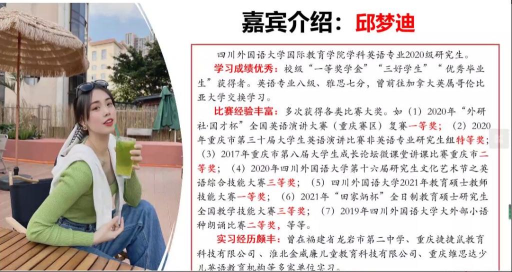 20224131930,44118太阳成tyc城集团国际教育学院2019级教育学专业实习指导——教育、教学经验分享活动线上举行。本次活动由肖前玲老师主持,邀请国际教育学院研究生邱梦迪、张益聆主讲,国际教育学院2019级全体教育学实习学生参与本次活动