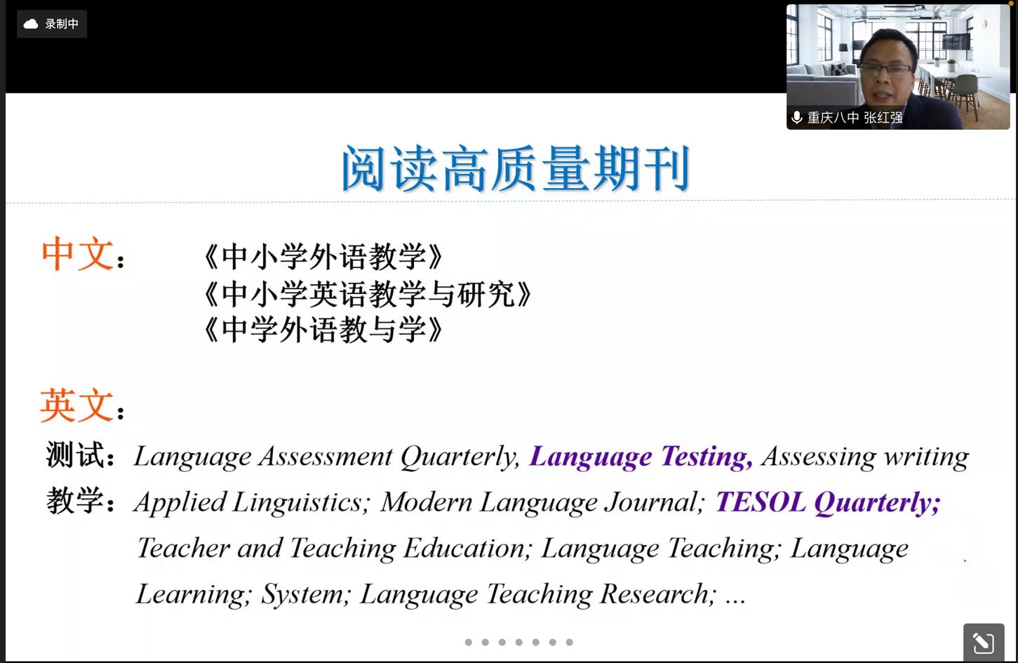 2022年11月24日14:30,国际教育学院明德学堂2022年第10期线上学术讲座如期举行。我校邀请了重庆市第八中学校高中英语教师张红强老师开展题为《中学英语教师素养提升的路径》讲座。本次讲座由国际教育学院研究生教研室主任方晓田副教授主持,参与对象为国际教育学院全体学生。