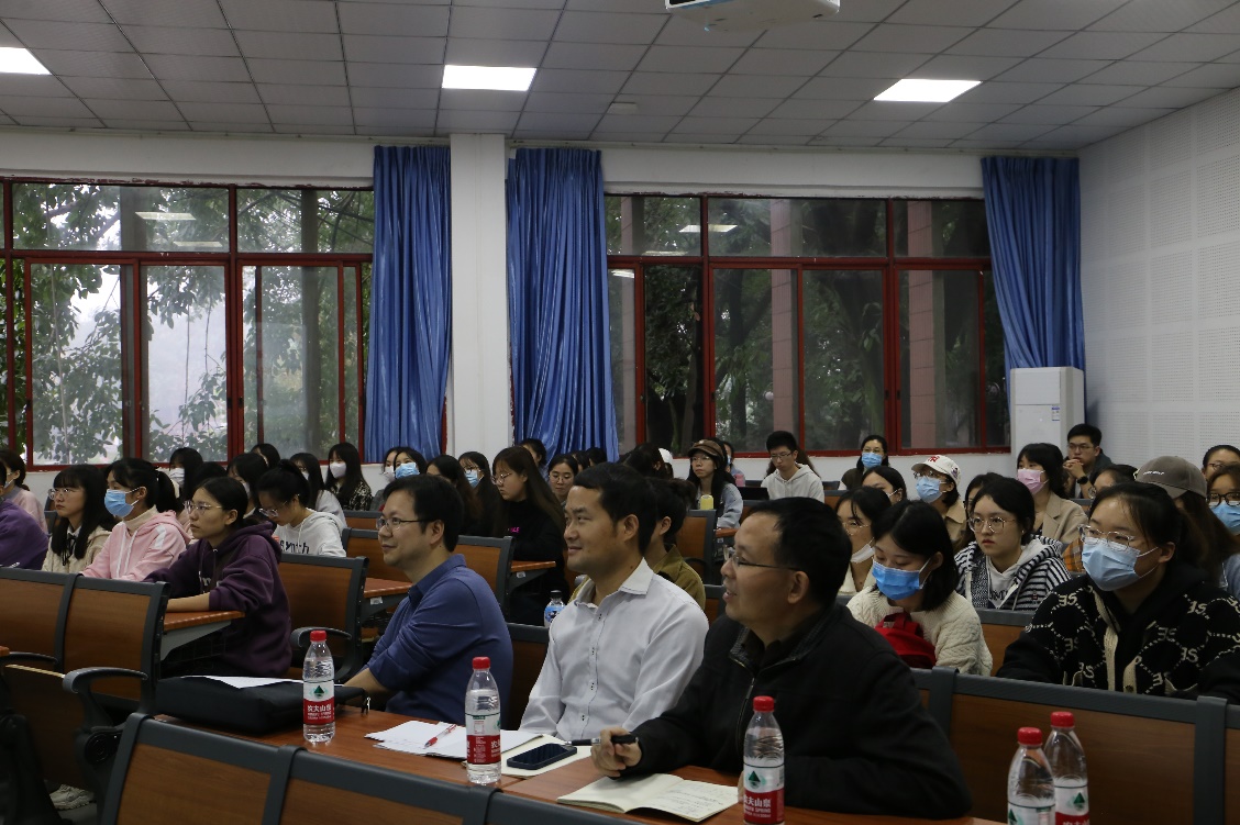2022年10月27日14:30,国际教育学院于培英楼水二教室举行明德学堂第8期2022年学术讲座。重庆市观音桥中学叶金全校长莅临我校开展题为《基于核心素养的教师发展与课堂教学》的讲座。本次讲座由国际教育学院院长龙洋教授主持,国际教育学院部分教师及2022级全体研究生新生参加了本次讲座。
