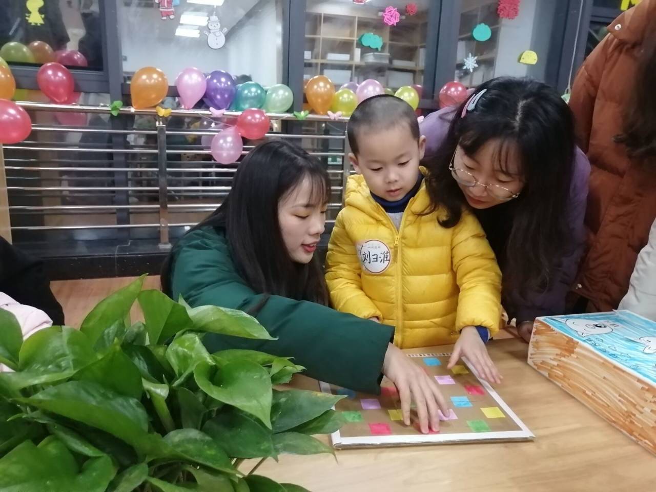 (同学们陪同小朋友进行益智游戏)