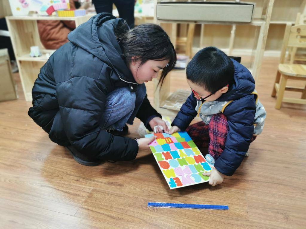 接着,签到完毕后,小朋友们进入活动室自主选择喜欢的项目进行游戏。室内分为高瞻特色区域与蒙氏自主工作两个板块,两个板块都有着丰富多彩的活动。