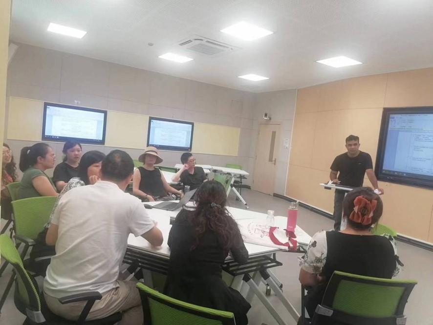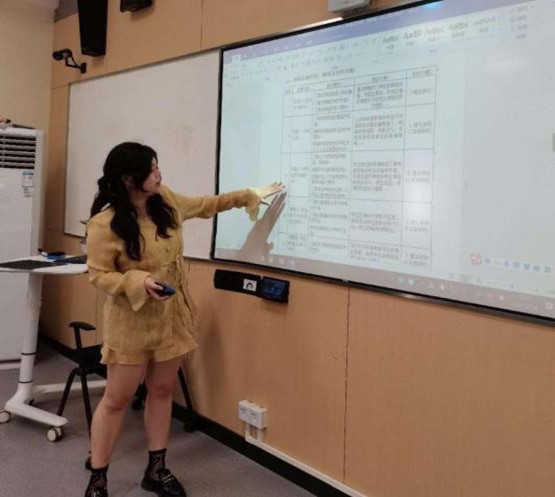 陈秋桐老师对《学前卫生学》课程的教学计划、教学目标、考核方式等进行介绍,并对具体教学片段进行展示。随后,莫林老师对《教育法规政策与教师职业道德》课程做了说课和磨课汇报,介绍了多维教学目标设置和双向教学方法运用。彭援援老师则围绕学前教育专业的《教育科学研究方法》课程目标、授课安排、主要课程内容和课堂设计等内容进行了系统分析。郑秀敏老师与庞婵娟老师对共同负责的《学前教育导学》课程进行了课程定位与价值、课程内容大纲、教案与主要教学形式内容阐述。外籍教师Khan就《儿童教育家园合作(双语)》课程的教学内容、教学目标和学期教学安排进行了分享,也提出了在教学过程中遇到的难题。教研组教师们分别就各门课程的课堂提问方式方法、作业设计与批改、板书设计等问题进行了研磨探讨,围绕提高课堂互动性与有效性相互交流学习。