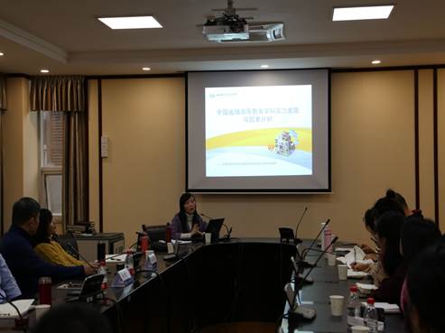 唐晓玲副教授报告的题目是“中国省域高等教育学科实力差距与因素分析”。唐老师以第四轮学科评估结果以及全国教育事业发展统计公报等相关数据为基础,运用SPSS数据分析法对省域高等教育学科实力差距以及因素进行了分析,并提出了相关结论与建议。与会老师高度称赞唐老师的量化研究法,认为数据来源权威、分析严谨,论证逻辑和说服力强,并表示唐老师给大家提供了一个量化研究的“样板”。