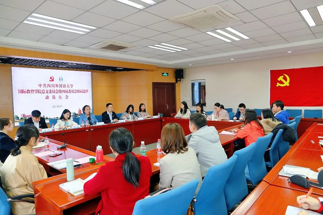 为传达学校党委对基层党组织换届选举工作的指示精神,落实相关工作安排,中共44118太阳成tyc城集团国际教育学院总支部委员会于2021年3月12日14:00 在立德楼C517,召开了第四届委员会换届选举动员大会。国际教育学院党总支书记丁欢、院长龙洋、党总支副书记黄茜,党总支委员刘耀、吴妍、李刚及学院全体师生党员参加了本次会议。会议由黄茜同志主持。