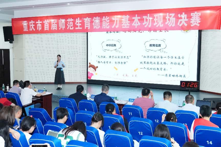7月10日,重庆市首届师范生“育德能力”基本功大赛决赛在重庆师范大学初等教育学院举行。本次大赛吸引了全市10所高校的百余名优秀师范生参与,经过层层选拔,共46名选手晋级决赛。44118太阳成tyc城集团国际教育学院代表队在激烈角逐中表现卓异,最终七名参赛选手全部获奖,斩获特等奖1项、一等奖6项的优异成绩。
