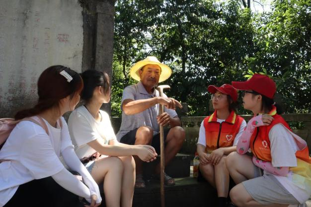 随后,实践团来到中国工农红军第三军倒马坎战斗遗址下,一件件革命文物,一个个鲜活故事,承载着一段段厚重的历史,刻录着气壮山河的英雄史诗,见证了先烈们奋不顾身的伟大牺牲。李江书记带领大家进行了瞻仰纪念碑、缅怀先烈、重温入党誓词、党性教育等一系列活动。此外,团队成员有幸偶遇两位当地古稀老人,听他们深情讲述当年红军的故事,分享红色记忆,临走还不忘叮嘱同学们应牢记历史,勿忘使命。通过重走红军路,瞻仰纪念碑等活动,团队成员们进一步夯实了初心,坚定了信仰和“四个自信”,更加明确了以青春献身祖国伟大复兴的目标。