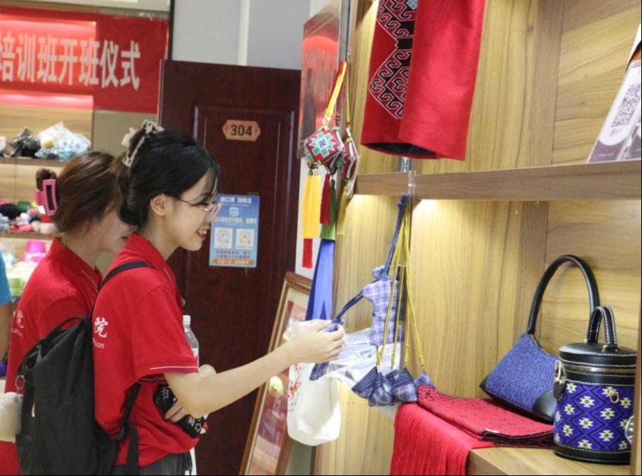 2022年7月11日15:00,实践团来到了隘口乡村扶贫产业园,通过李江书记的介绍,深入了解了隘口镇乡村产业的综合发展情况,对隘口镇在脱贫攻坚阶段取得的巨大成就感到非常震惊和钦佩。同时,团队还前往隘口土家织锦非遗工坊,参观了独具特色的土家族织锦工艺“西兰卡普”,感受了非遗文化的魅力。团队成员切身观摩学习了土家织锦的制作过程,感叹工艺之精巧,收获颇丰。