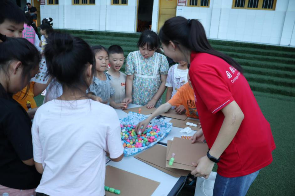 2022年7月11日19:00,实践团在平所小学开展了科学游园会,活动包括“绘本小手办”、“3D全息投影”、“魔法搭建”三个小游戏。奇妙的小游戏不仅吸引了许多儿童参与游戏,围观家长还纷纷前来打卡。