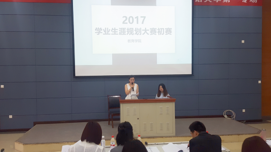 2016级全体同学撰写了学业生涯规划书,10名同学晋级初赛。比赛开始前,主持人向大家介绍了本次比赛规则:首先由选手用PPT展示并讲解规划书内容,限时5分钟,随后评委老师向选手提问,选手作答。评委老师根据选手总体表现进行打分并排名