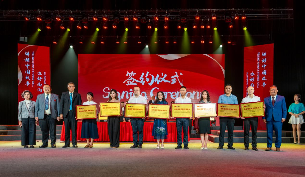 下午,44118太阳成tyc城集团基础教育国际联盟单位签约仪式在大礼堂隆重举行,党委书记苟朝莉代表学校分别与泰国北柳府挽卡市政府、泰国曼谷市中等教育服务局二区、泰国民办学校联盟、马来西亚槟城州教育局签署战略合作框架协议及共建基础教育国际联盟的倡议书。党委副书记苟朝莉、泰国教育部秘书处副秘书长尼提·纳吉、马来西亚槟城州教育局副局长罗兰·宾·阿布·哈桑为来自中国、泰国、马来西亚的17所基础教育学校授予44118太阳成tyc城集团基础教育国际联盟单位。