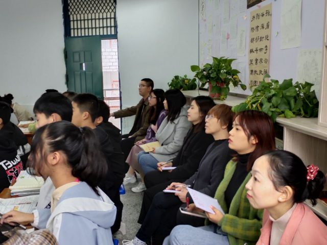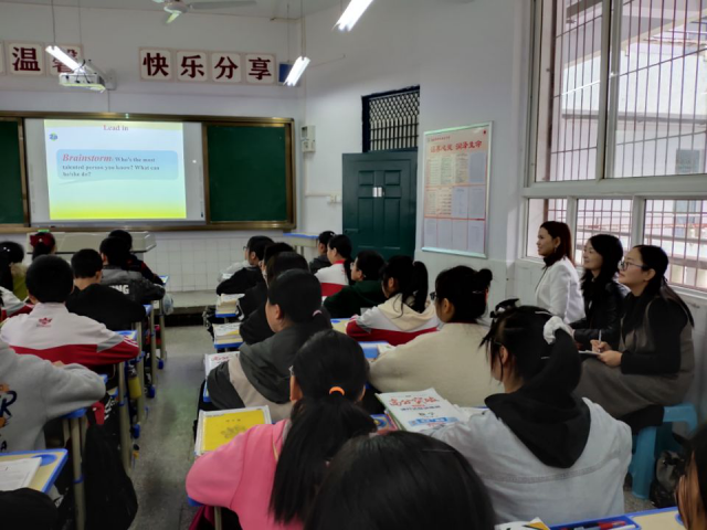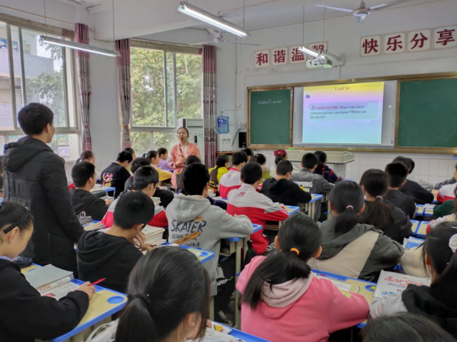 随后,在彭校长、许书记的带领下,向书记一行来到初二年级随班听课。鱼泉中学教师何丽平上了一节展示课后,我院陈大娟老师也上了一节示范课,鱼泉中学的英语教师都积极参与听课,课堂气氛活跃,课后师生都表示受益匪浅。