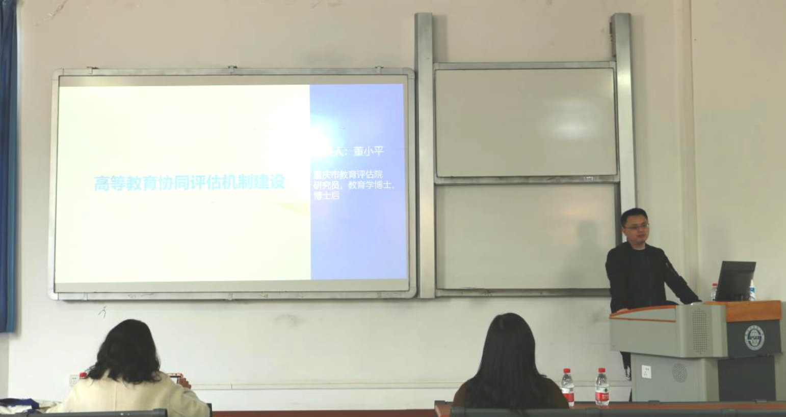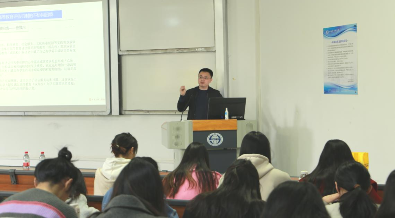 2024年3月14日下午15:00,由重庆市教育评估院高等教育研究所所长董小平教授主讲,唐晓玲教授主持的《高等教育协同评估机制建设》讲座在培英楼顺利举行,国际教育学院全体研究生参加了此次讲座。