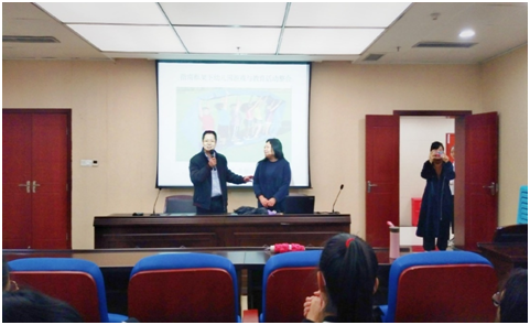 此外,李姗泽教授还与现场同学进行了有关石头剪刀布的游戏互动,讲述了她在上海听讲座、去深圳幼儿园参观的亲身经历,并分享了许多有关于手的游戏。李教授生动的演讲活跃了现场气氛,并且激发了同学们对学前教育活动的兴趣。