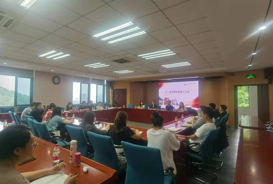 为确保新学期各项工作顺利开展,8月27日下午,我院于行政楼C517会议室召开新学期教职工大会。全体教职员工参加此次会议。会议由学院综合办公室主任刘耀主持。