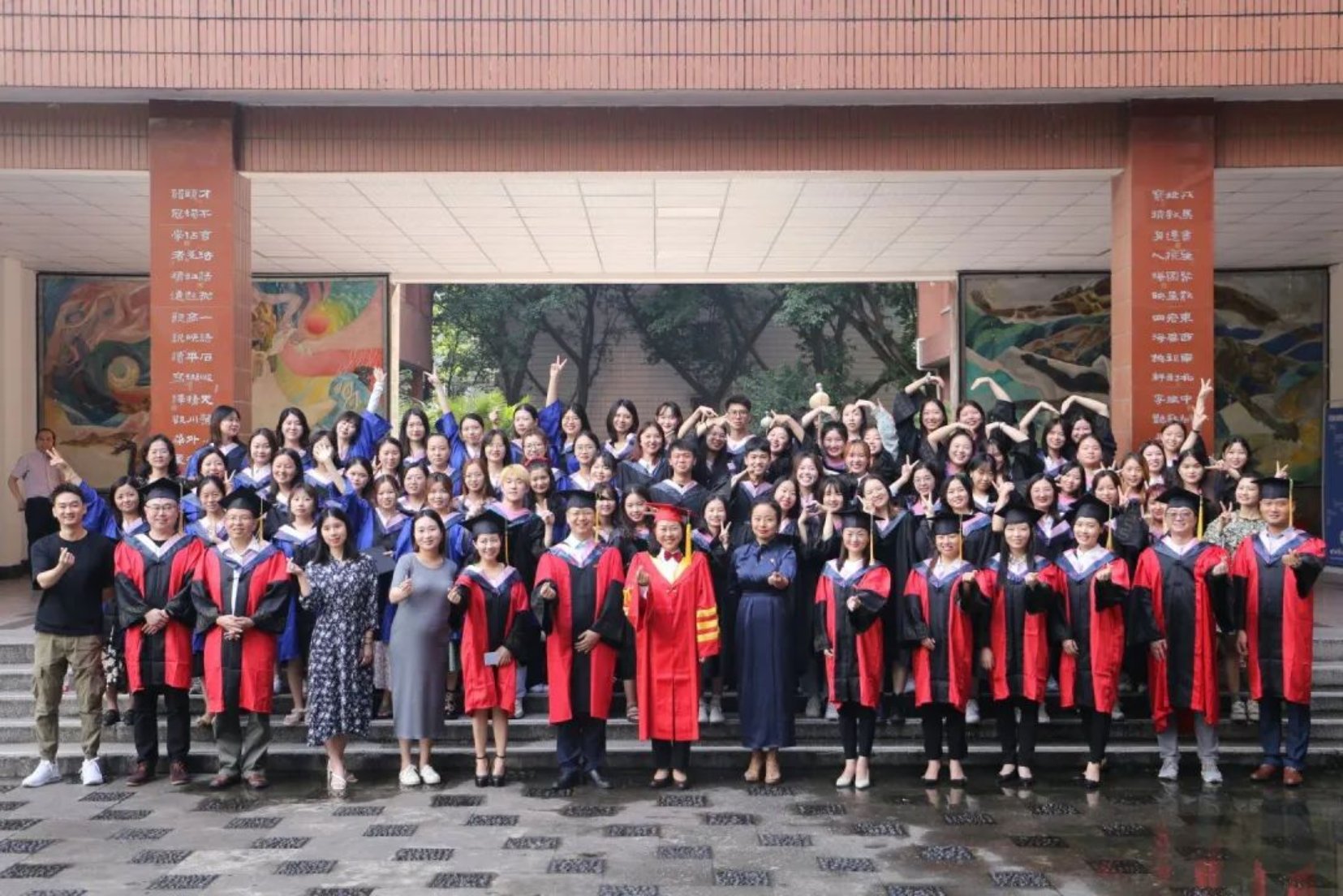 最后,全体毕业生们与老师们进行合影留念:无法留住时间,但可以定格时间。