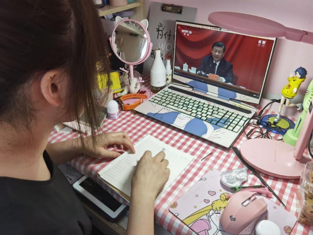 首先,在思想认识方面,同学们通过观看直播全面回顾了一百年来共青团坚定不移听党话、跟党走的光辉历程,深刻学习领悟了共青团和青年工作的宝贵历史经验。习近平总书记在大会上对做好新时代共青团工作提出明确要求,对当代青年寄予殷切期望,饱含着党中央对青年一代的亲切关怀和对共青团事业的高度重视。同学们一致认为,在新的征程上,要认真学习、深刻领会、全面贯彻习近平总书记重要讲话精神。正如习近平总书记在大会中的讲话:“千百年来,青春的力量,青春的涌动,青春的创造,始终是推动中华民族勇毅前行、屹立于世界民族之林的磅礴力量。”同学们一致表示会坚定不移听党话、跟党走,勇立时代潮头;以强烈的上进心和进取意识,培养自身适应不断发展和变化的能力,不断完善自我,逐渐将自己培养成一个全面发展的新时代共青团员,在实现中华民族伟大复兴梦的路上,有一分热,发一分光,做出自己的贡献。通过本次学习,同学们更坚定了自己的政治立场。