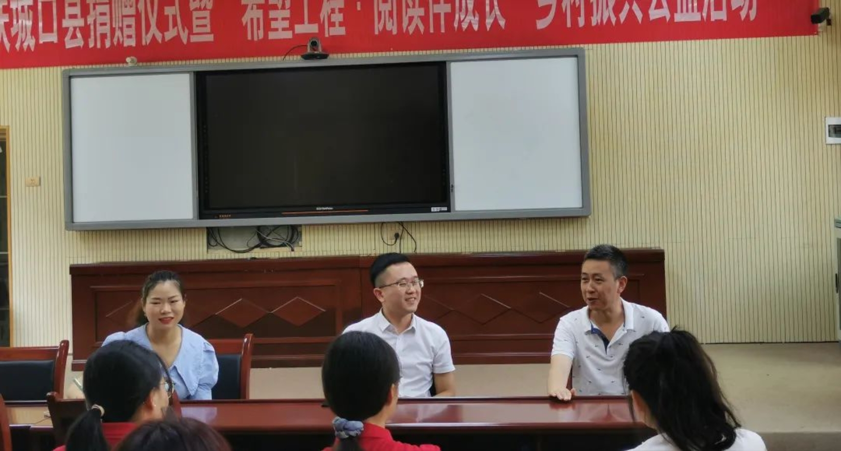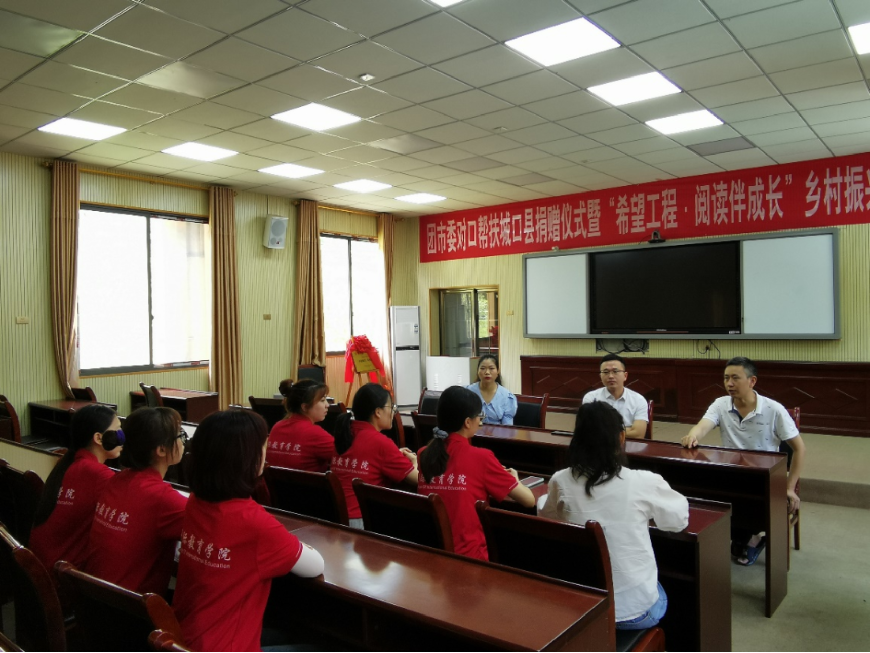 上午,邹书记、费永芳副书记、刘校长和李爽老师、志愿者们在咸宜中心小学会议室举行暑期“三下乡”社会实践交流会。