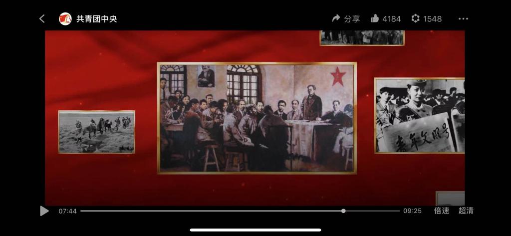 接着,大家观看了庆祝中国共产主义青年团成立100周年主题宣传片《共青春》。一百年前,中国青年呼喊着“外争国权,内惩国贼”的响亮口号,维护国家利益,维护民族尊严。一百年后,中国青年勇敢走向防疫前线,再次扛起了保家卫国的大旗,一代人有一代人的长征,一百年的峥嵘岁月见证中国青年的奋斗青春