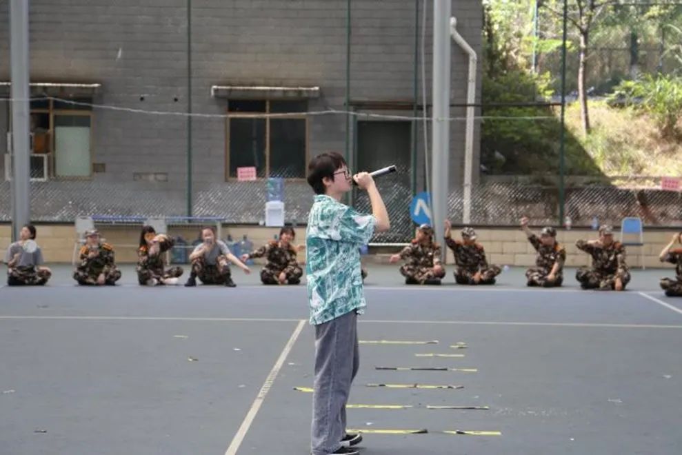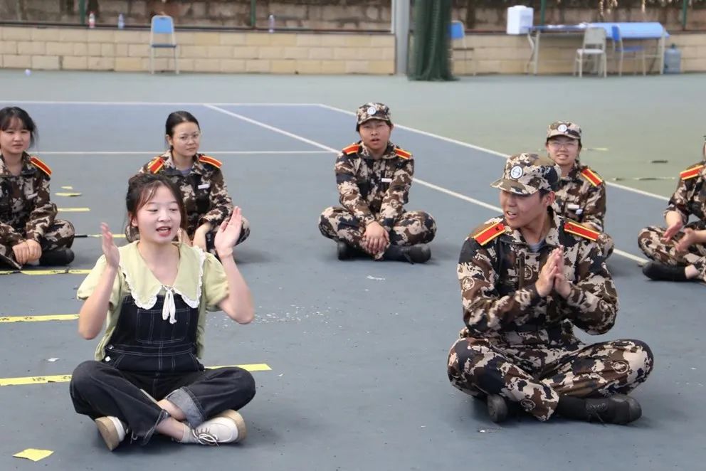 在学长学姐的带领下,22级的同学们根据班级进行游戏分组,分别进行了“桃花朵朵开”、“大风吹”、“数鸭子”三种游戏。这些游戏的开展不仅增强了集体意识,团结意识和共赢意识,而且褪去了22级新同学们军训的疲惫,风雨操场回荡着同学们欢快的笑声。