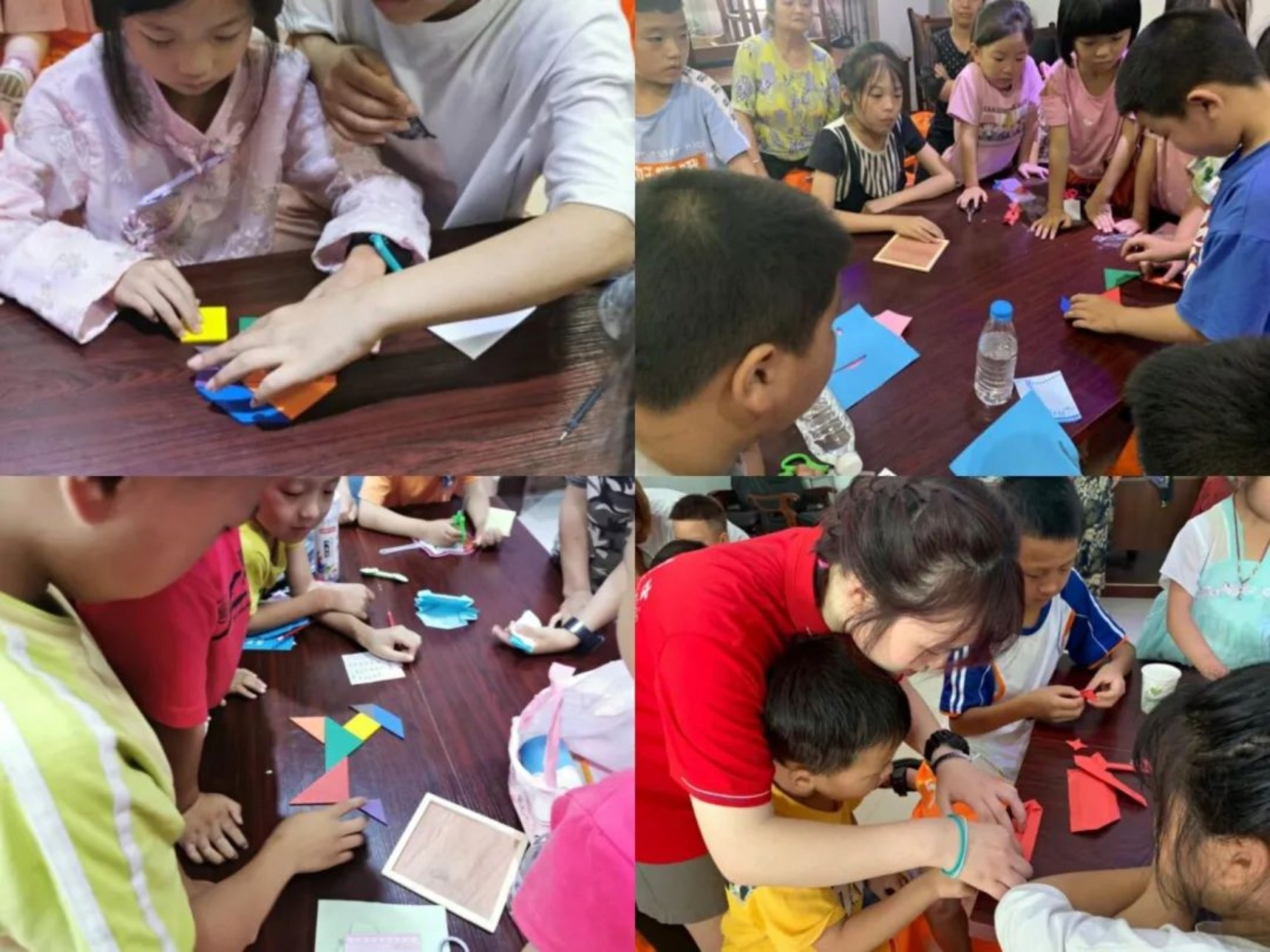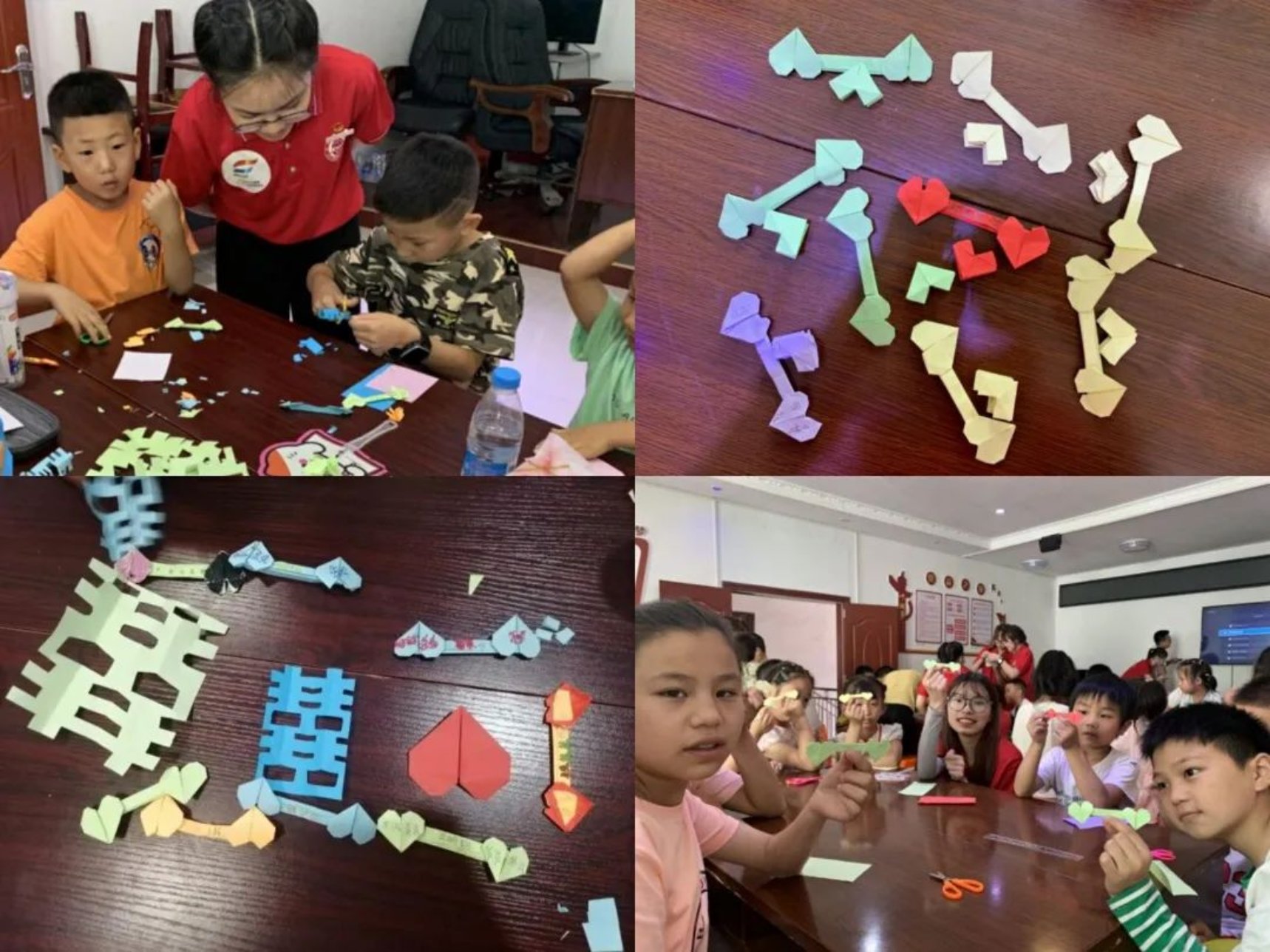 下午,我们在社区为小朋友们带去了中国古老的民间艺术——剪纸。小剪刀在志愿者们与孩子们的手中来回穿梭,作品虽稍显稚嫩,但承载孩子们对中华优秀传统艺术的热爱。轻盈小巧一张纸,承载千年中华文化。小朋友们折出的“心连心”不只是一个小小的物件,更包含着对家人、对党、对祖国的深情爱意。一双双小手,将这份爱意传递。