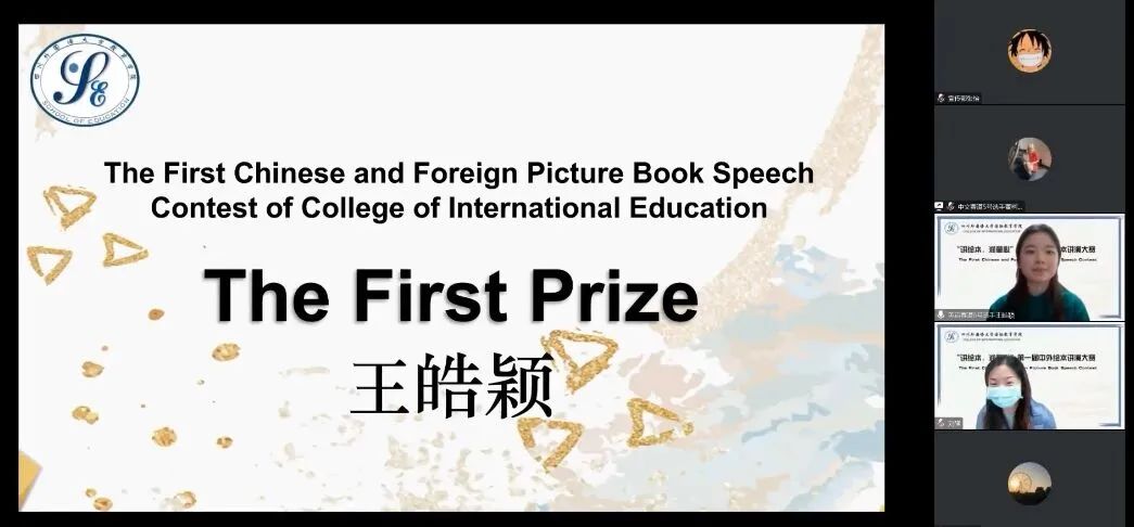 为展现国际教育学院人才培养特色,提升学生授课技能与教学设计能力,学院于2023年1月5日9:35在线上举行第一届“讲绘本,润童心”中外绘本讲演大赛,本次比赛由国际教育学院综合办公室主任刘耀、学前教育专业教研室主任郑秀敏、陈大娟老师和罗觅嘉老师担任评委,由张蔓莲和周潘正诺主持。