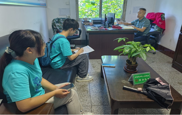 在结束宣讲活动后,我们来到村办公室采访村委会副主任刘刚同志。刘刚副主任表示:“作为授牌的污水处理园区,基于中央环保督察给予重庆‘四山方队’的工作要求,我们地区从2016年就开始实施村庄工业污染治理工作,一直持续到现在。我们区的环保政策是针对‘四山’范围内在工业企业上的专项整治政策。”面对队员关于水资源的发问,刘刚副主任作了细致回复,并表示十分期待我们最终的活动成果。